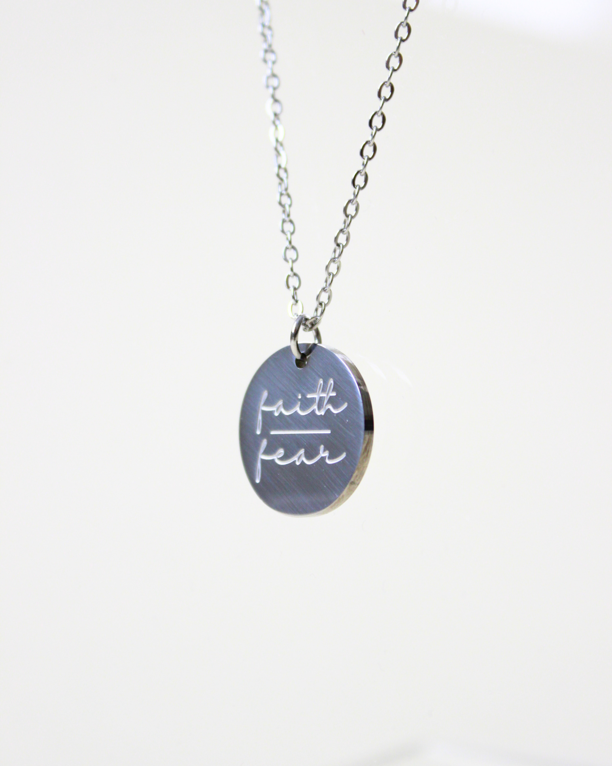 A meaningful “Faith Over Fear” silver necklace designed to inspire strength, courage, and hope. This elegant piece serves as a daily reminder to trust your journey, stay grounded in faith, and move forward with resilience—perfect for everyday wear or as a thoughtful, uplifting gift.