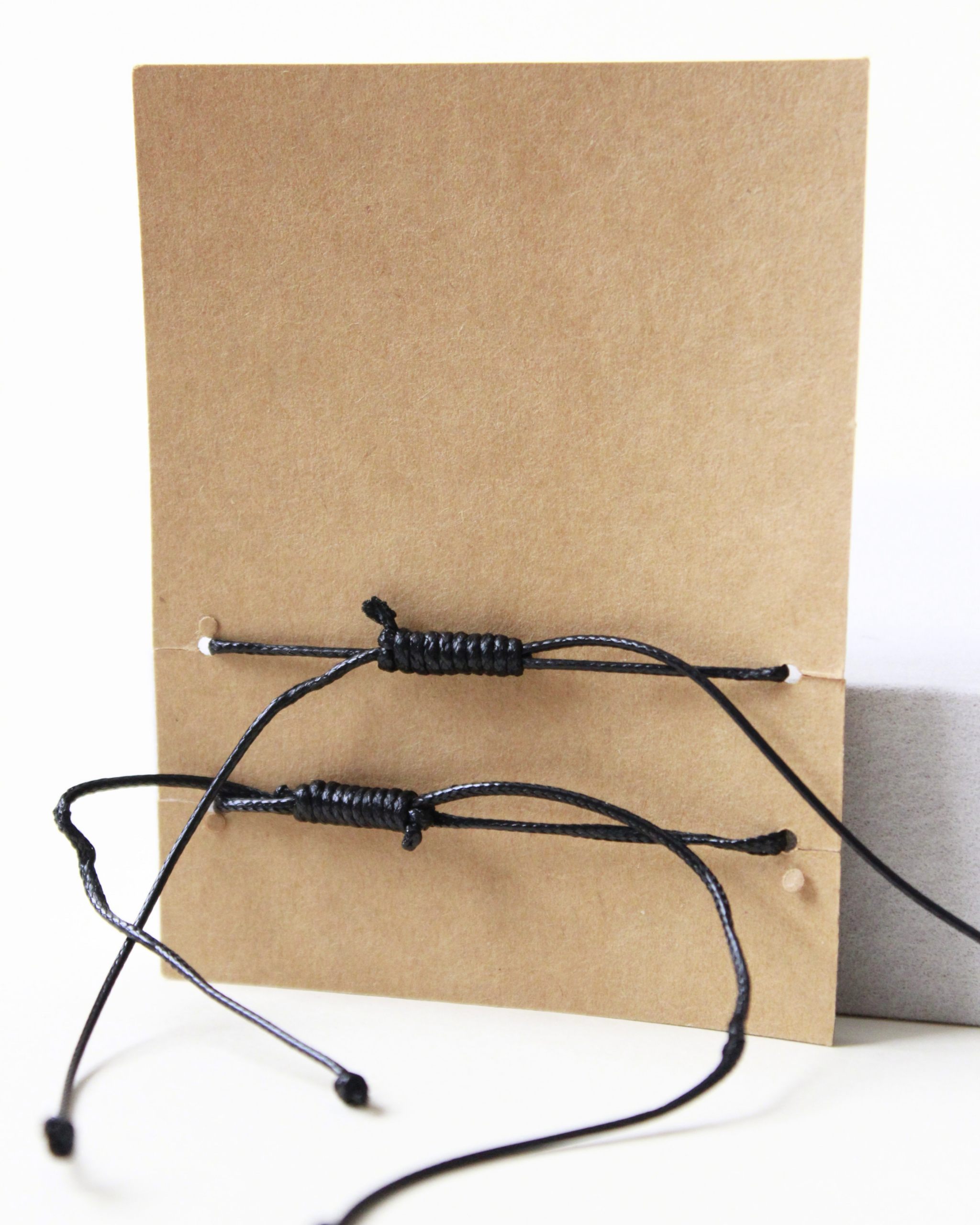 Each set includes two bracelets—one for the giver and one for the receiver. Because of this, it creates a lasting symbol of connection, even across distance. The black string thread bracelet represents emotional support, unity, and reassurance during difficult times. Meanwhile, the included card carries a meaningful message of encouragement and presence. On the simple, attached card are the words: